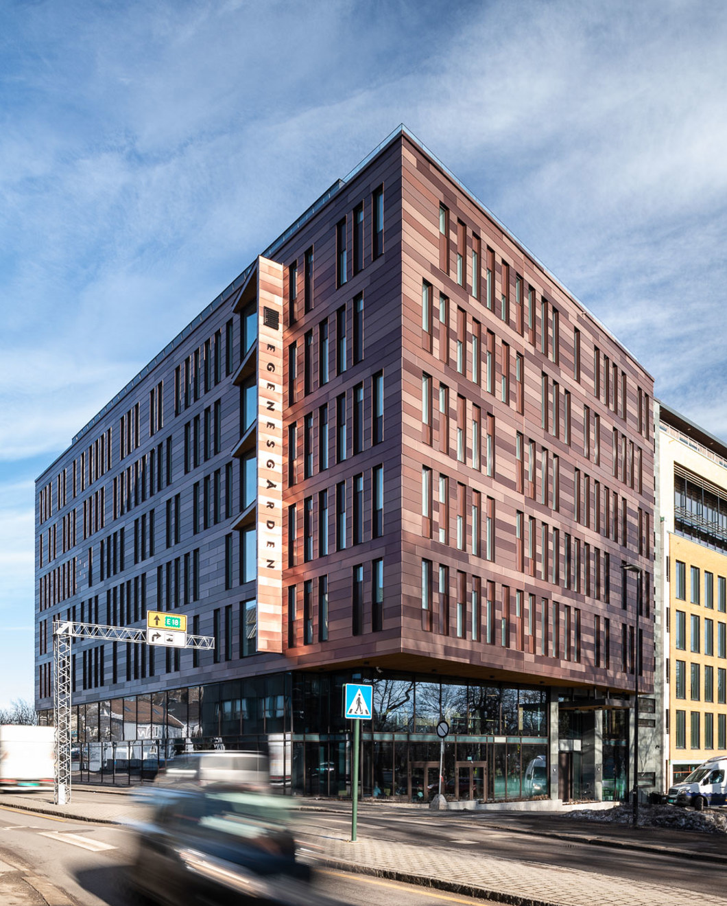 Egenesgården er Tønsbergs høyest sertifiserte BREAM-næringsbygg og tegnet av KB Arkitekter. Det innehar sertifiseringen BREAM «very good». En vanskelig tomt, som har blitt utnyttet på en smart og effektiv måte, med et indre atrium som møtesplass. Over bevart eksisterende grunnmur reiser seg splitter nye og moderne kontorlokaler for b.la. Statsforvalteren. Kom å få en rundtur med Thorvald Bernhardt i dette næringsbygget av høy kvalitet!
